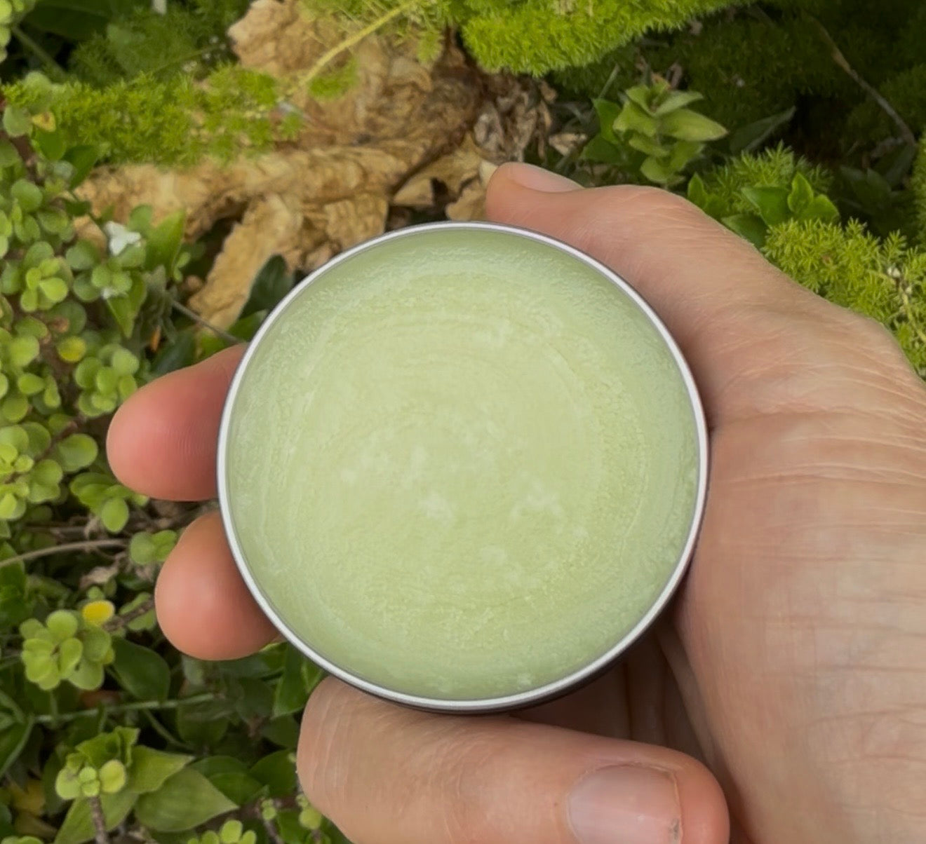 Organic beef tallow, organic comfrey, organic rosemary, organic jojoba, peppermint essential oil, blue tansy essential oil.