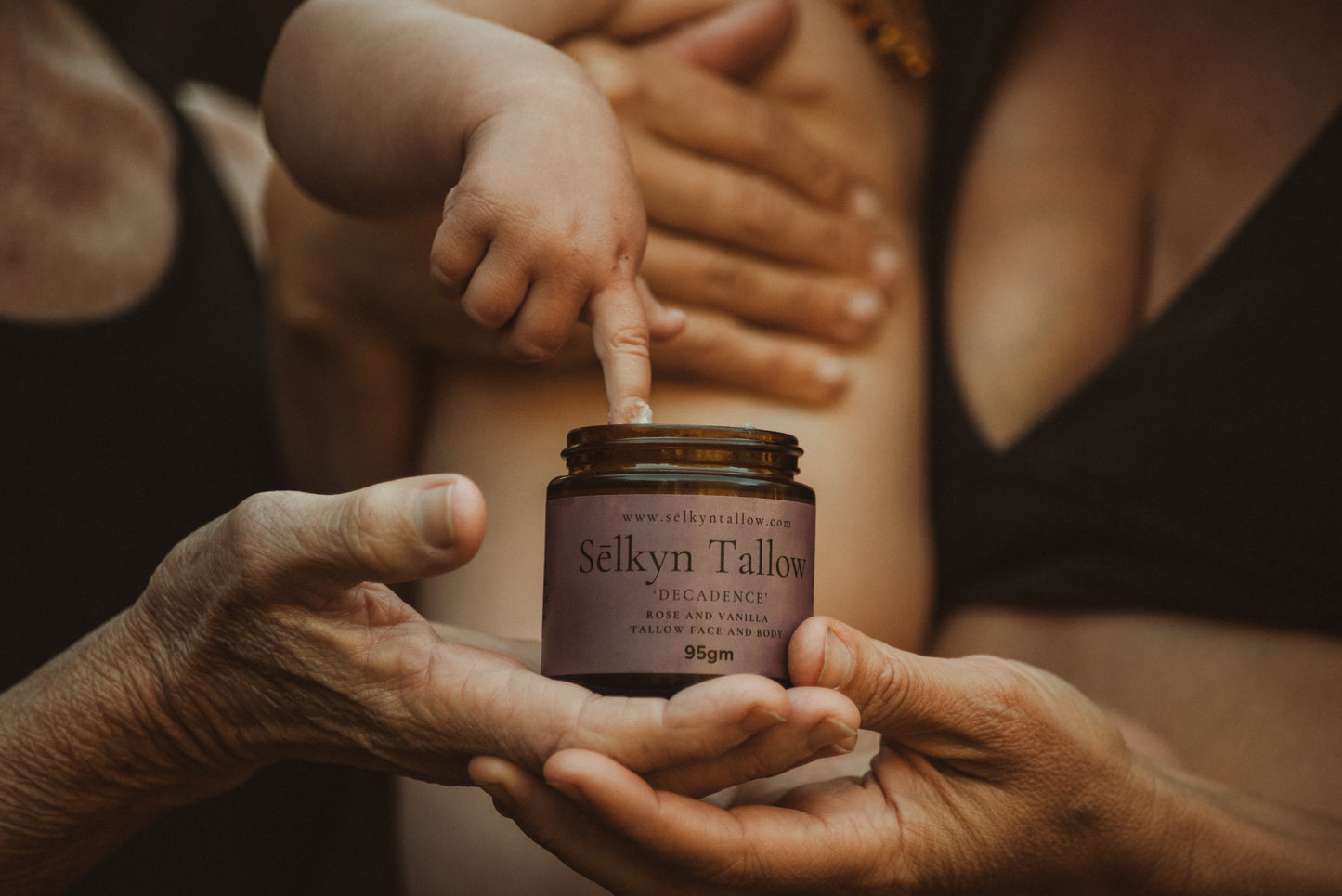 Indulge your skin with 'Decadence', a luxurious organic tallow balm infused with the delicate beauty of rose petals and the warm, comforting notes of vanilla bean. Made from 100% grass-fed, organic tallow, this deeply nourishing moisturiser is naturally rich in vitamins A, D, E, and K to replenish, soften, and restore balance to your skin.